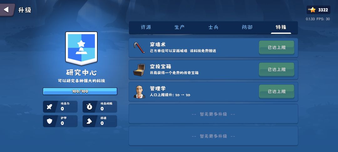 如图,不要兵,从第二波可一直跳到最后,建筑只用出四个,这里是刚好刷出了送铁的天赋,不过就相当于加快了一下进度,正常打一局一万四星没问题 硫磺可以选择交易,但这里没开交易,资源换太慢了,一般外围第三个图刷硫磺,前期一条线开过去就完了,英雄强度不够开过去的升一下,再不济家里做个石墙,或者怪脸上做个哨塔 方法多的是,今晚一时兴起试了几个小时,约莫摸出来个速解,也直接把所有的天赋都拉满了 对了,新手提醒,