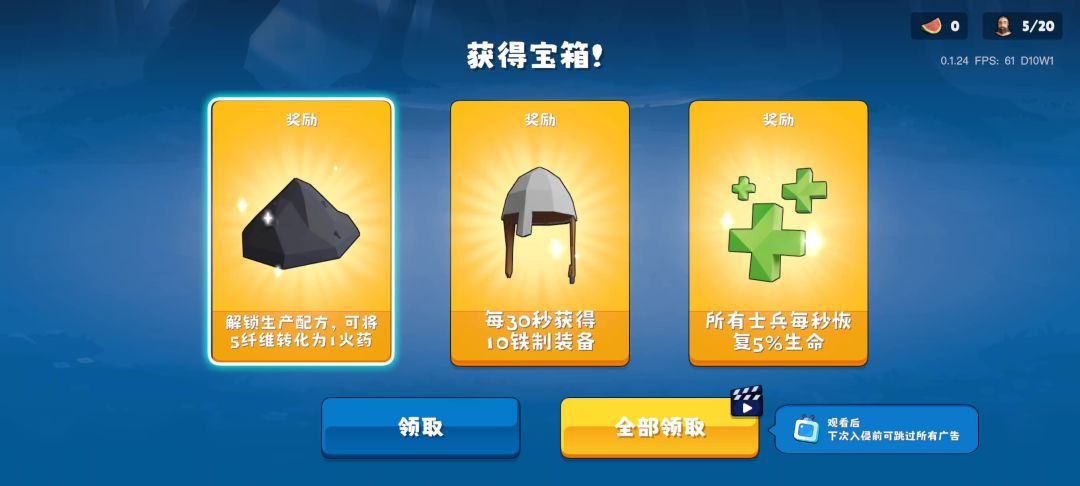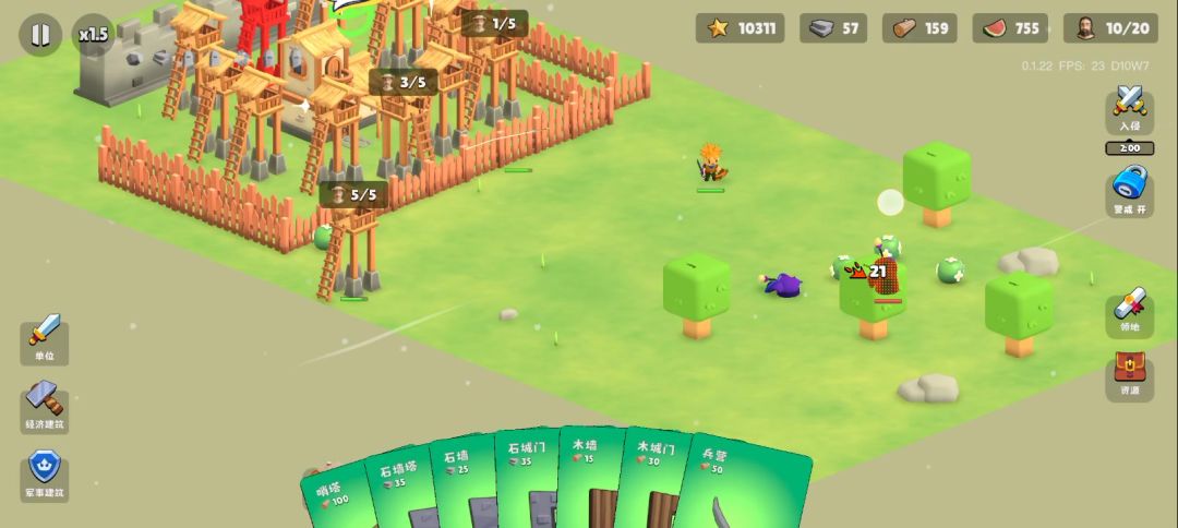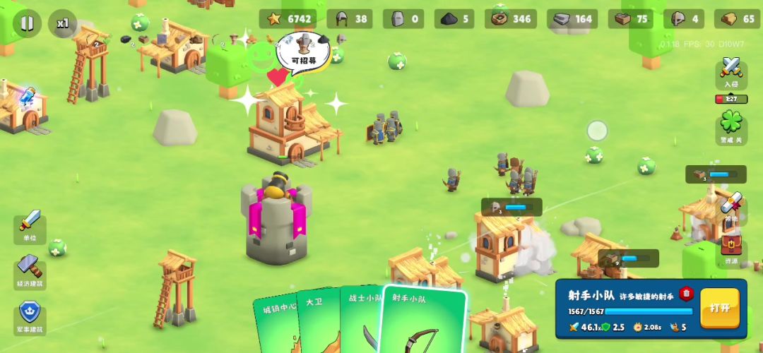这个游戏,得红!既有策略也有塔防,自由度高,可以有很多种玩法。 第一步,用木头延迟第一波。全部用上得800木头。 所以开局就是挖食物,造人。然后全部资源点木头优先。先延迟两波,建2-4个箭塔。英雄开地图,开宝箱。建议先把魔法书里面的宝箱点满,开局看一下广告。在一波之间再有宝箱就可以直接跳过广告全得了。这个时候至少可以开12格以上。完全足够了。 接着就是造箭塔,我是排在城镇的左右两边,大概一边4-6