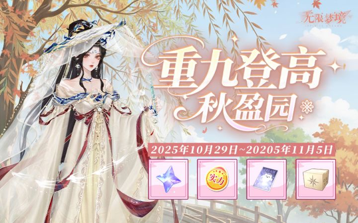 九九重阳,登高敬先。在这秋风送爽,悠然恰意的佳节时分,北北想邀请大家一起浮生偷闲~七日登录连领奖励,戳戳气泡积分换礼!限时活动「重九登高秋盈园」现已开启~快来和北北一起赏秋园色,品敬先情。一、活动入口游戏内-梦境管家-重九登高秋盈园 二、活动时间即日起——11月5日23:59 三、活动区服10月29日已开区服,仅限官服开放 四、活动规则~日日登望远~秋风送凉爽,北