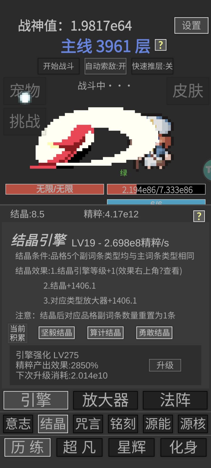 我觉得还是无限等级那个,自动升华那种模式更有意思一些。