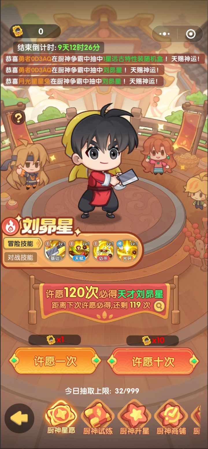 俺在小程序玩的,也算是想抽的都抽到了吧(鸣火小吉娜,月神露西亚,万伏小蓝星)😂有预感我热情要衰退了,赶紧来写个记录hhh新出的这个厨神真的是超模了,和其他英雄不在一个水平线上。这个我真是难得这么欧,30+抽就出了,hh怎么是在小程序上,要是别的抽卡游戏有这么欧就好了,俺不想吃大保底……a跑题了,预感我热情消退也是因为这个,限时卡池,欧了一次还能一直欧吗,抽到了养不起呀。现在都已经是榜单后位了,这
