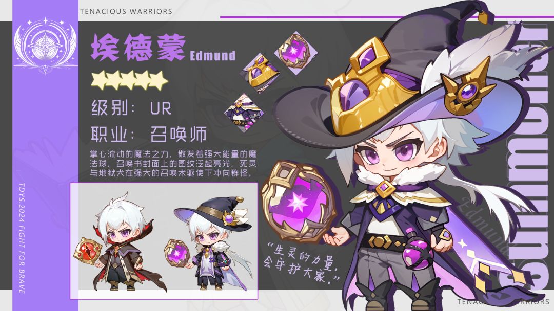 【逸闻·关于埃德文】 梦幻岛的居民都说,那位白色头发,一袭长袍的召唤师埃德蒙,是一个令人敬畏的存在。 尽管召唤死灵的法术只是一种攻击的手段,但那带着烈焰的地狱犬军团和高大的死灵骑士还是会让大家不由自主地感到害怕和畏惧。 “......混沌暗夜,星辰碎散,幽狱之门,随咒而启!” 白发召唤师初次登场便给梦幻岛的居民们留下了极为深刻和震撼的印象。 翻飞的魔法书页,散发着暗紫色光芒的魔法球,还有大地上如生