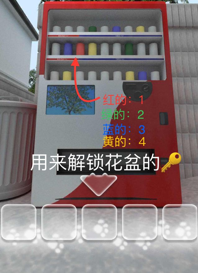 上屋顶结局的攻略在此:分享的是新玩到的,警察叔叔带回家的结局。1. 花盆:红绿蓝黄(根据自动贩卖机里颜色的数量从小到大排序),拿到钥匙2. 把钥匙给老奶奶。3. 从贩卖机那边垃圾桶进去叔叔家。(刚开始还疑惑为什么不是奶奶家,玩到后面就懂了)4. 点院子里的水桶,旁边积水里有站卡,点水桶会得到相片。把照片给奶奶看,奶奶就走了。5.院子木盒子的密码:出生点墙上花的数量3-6-5,开盒子拿棒