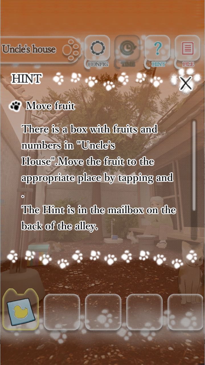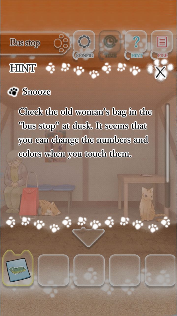 卡在晚上,屋顶上有只不高兴的刀疤猫不让我通过,已经收集到豹子和兔子的卡片,公园里的沙地里画了只猪,不懂这是什么提示。然后时间也不能转了……中午时有个摔倒的老太太我不知道怎么帮来着……难道那个是获得最后一块乌龟卡片的条件?但是我已经不能用时间快进了,这样下去还能玩吗【扶额】