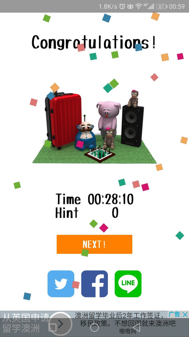 ☞右边桌子上四只茶杯,勺子摆放顺序为左下上右,即为门边左上柜子密码,得到印有🍎的光碟放入投影仪中,得到数字330275在平板中输入,得到🍎房卡☞将茶几上拿到的电池放入音响中,数出每个床上抱枕个数△○□◇分别为6152,在外面红色行李箱上输入看到箱子上的文字,得到飞镖递给猪,记下飞镖在靶上的位置,即门边右上柜子密码☞拿到🍊光碟,放入投影仪得到050227在平板中输入拿到房卡,按帽架摆放可知🍎房中