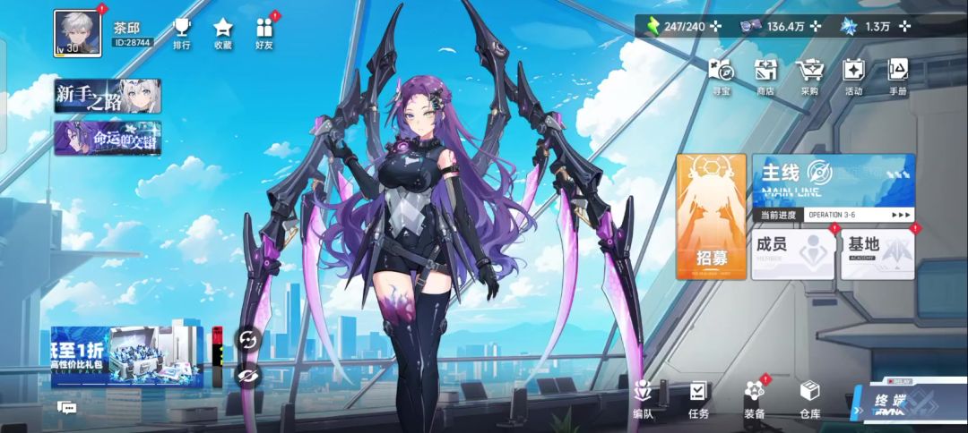 游戏必备兑换码3个 净珀各100个 YXKJ6666 新加的 YQCS666 YQCS888 YQCS999 主页这里有一个问卷,由于没有红点提示。你们可能就损失了巨额的财产(200净珀) 当我们抽到帅气美丽的角色却不能放出来欣赏,那不是很可惜!这里可以通过更换角色把自己喜欢的放在首页,每次登录游戏都赏心悦目的! 舰筑里的杂物记得每天安排角色花费体力清理,有些小奖励!每天清理有上限哦! 守备里的科