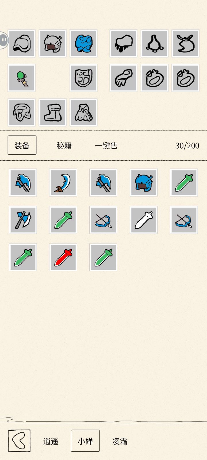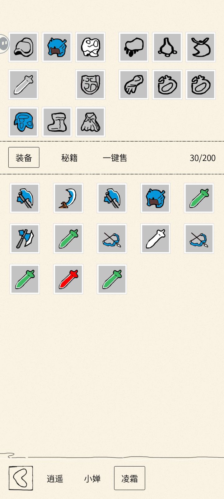 该攻略是优化版内萌新攻略,3.0是游戏版本 前期和原攻略一样开局看个双倍经验,然后把送的自动技能升级到不能升为止,就去打经验1 升到5级后解锁第二个角色,升到10级再解锁第三个角色 ,继续挂经验1 等弓箭也就是凌霜的等级到达12-13级的时候去刷铜币1 看个双倍,把系统送的逍遥的主动技能升到10级就差不多了 这个时候可以去刷装备1,刷一把弓箭出来即可,只要是弓箭就行,给弓箭手装备上 然后这个时候去