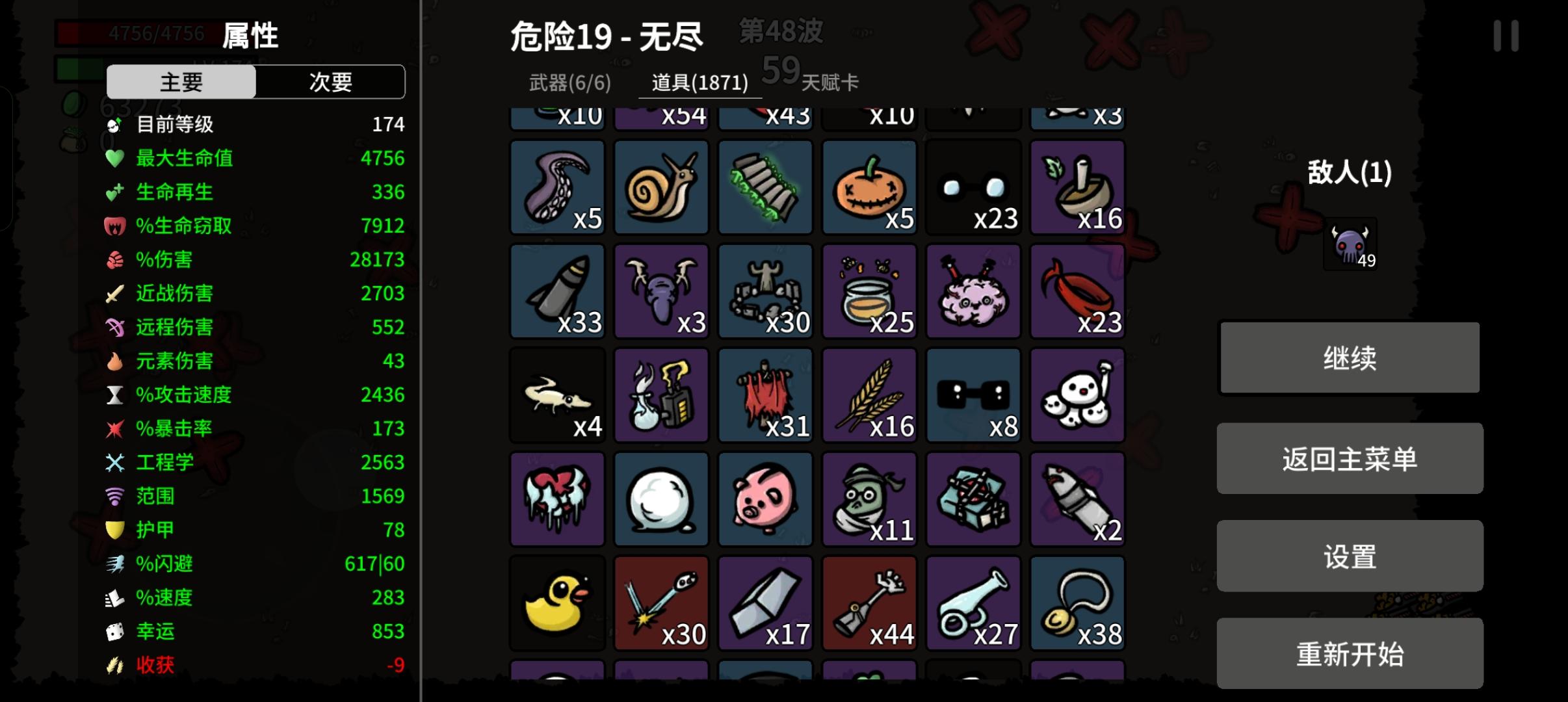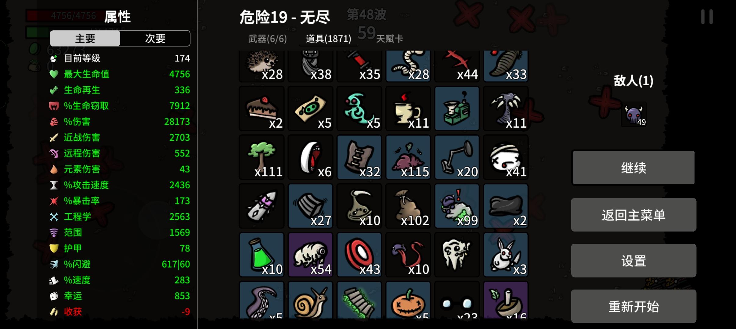 48波40+树叶、戒指、机械手100+背包、腐肉、箱子都薅了200多万材料50水熊虫还有巨大提升空间,前30波浑浑噩噩,30波后大彻大悟。