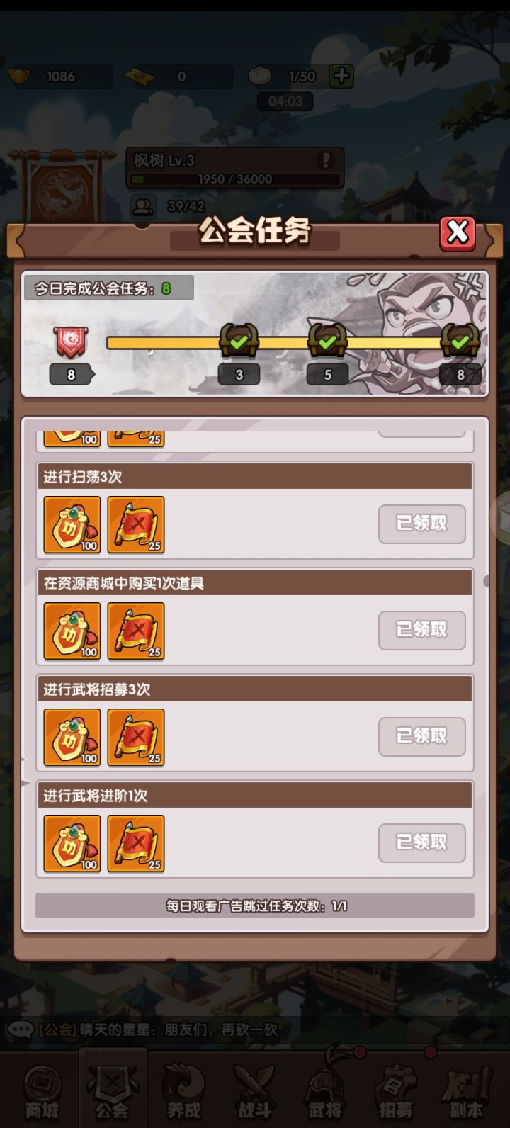 图片两个任务一个英雄突破前期还行可以留着一天突破一次后面根本就没得突破,唉他给你了一个看广告完成的办法但是只能看一次你要是完成了其他任务那不好意思今天你任务就完不成了。还有招募三次每天不用元宝买一共是四个,其中加上每日任务全部每日任务也有个招募三次。所以你根本存不下来不靠外面礼包一天就50元宝。而且没有额外任务必须全部完成才能领最后的礼包
