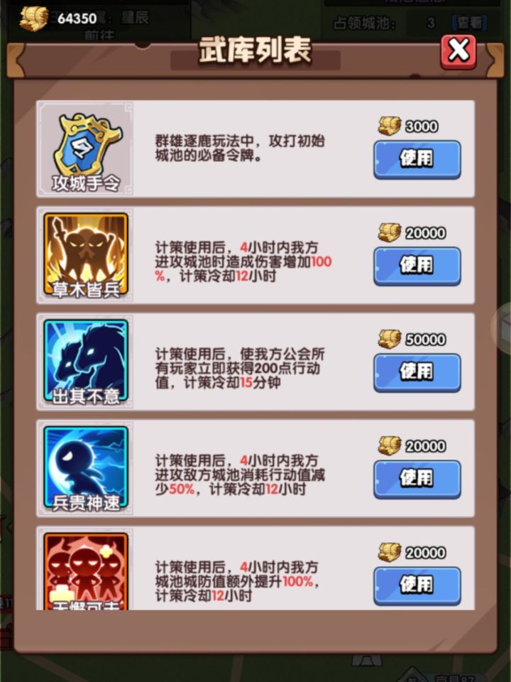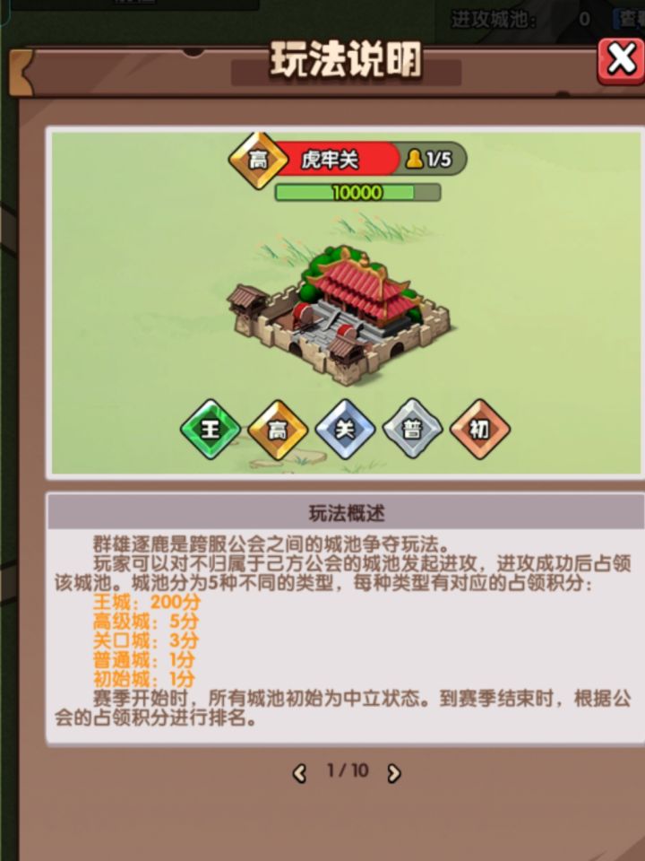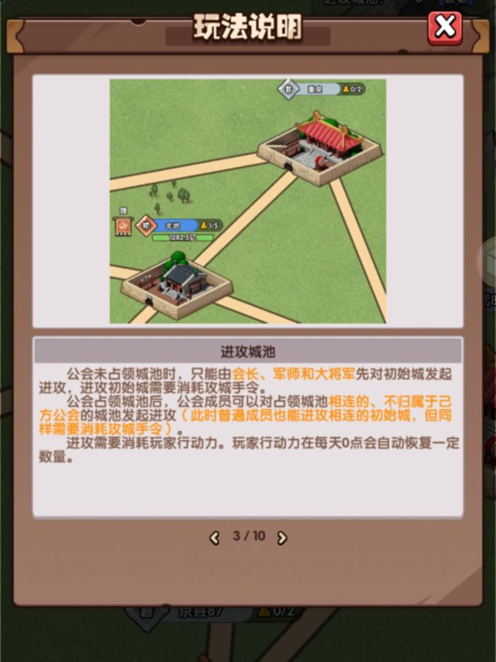 一、活动介绍群雄逐鹿是配合新增加的宝物系统出现的活动,现在更新后要求创建角色33天而且通关80关的公会人员才可以参加,通过活动可宝物藏宝图、宝物碎片、宝物进化石以及宝物突破石。二、玩法开始。首先公会会长需要任命一个军师和一个大将军,开始未占领城池的时候公会会长、军师和大将军可以选择初始城发动进攻,以后就只能打挨着的城池了打,进攻需要消耗行动力(图1),行动力每天凌晨0点会恢复一部分,但不会回