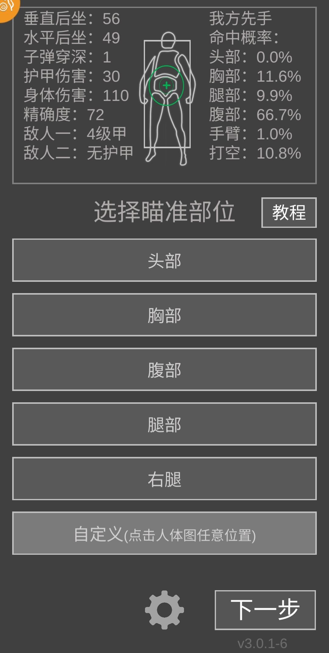 首先来谈谈作战选择,一共三种: 冲锋:如遇到选择逃跑的敌人将获得先手(遇到大概率逃跑的敌人可以先扔个投掷物再选择冲锋,这样既能造成伤害又能获得先手)。 架枪:第一次瞄准无视瞄准时间(如果是两个敌人,打完一个还需要再瞄准一次打第二个),遇到选择冲锋的敌人还将获得先手。 逃跑:这叫战略性撤退,但遇到选择冲锋的敌人会逃跑失败且敌人获得先手,但可以通过先扔投掷物达到百分百撤退。匪鼠战的绕路大同小异但不会失