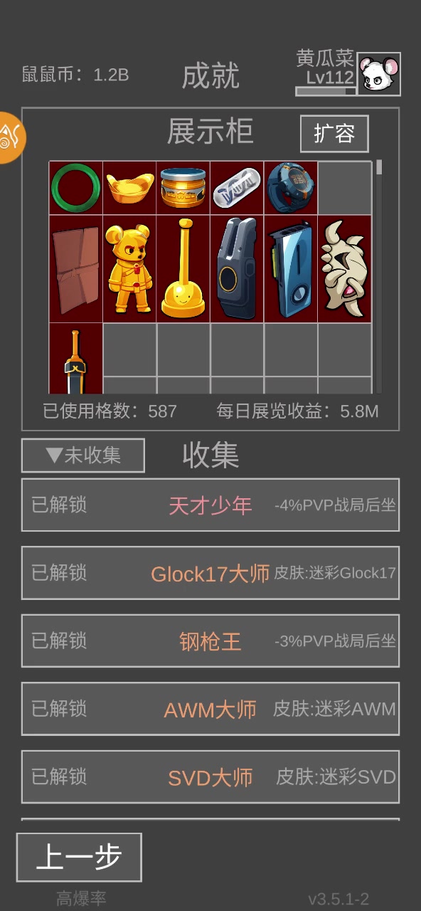 成就只差翡翠手镯和机密文件没满级了,其它都完事了,手镯和文件太少了[表情_吐舌头]#老鼠大冒险