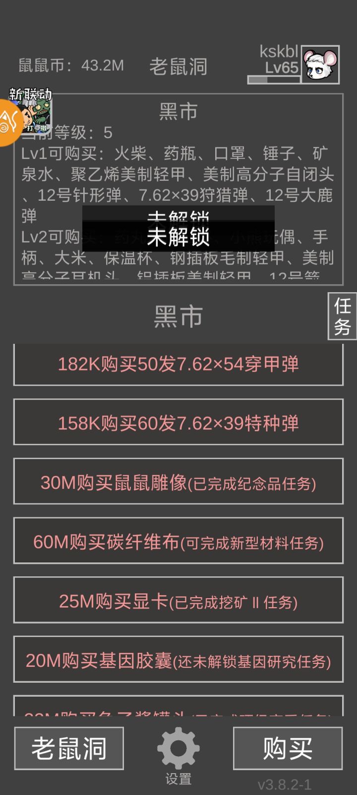黑市满级了,任务也接到了,为什么买不了任务道具啊