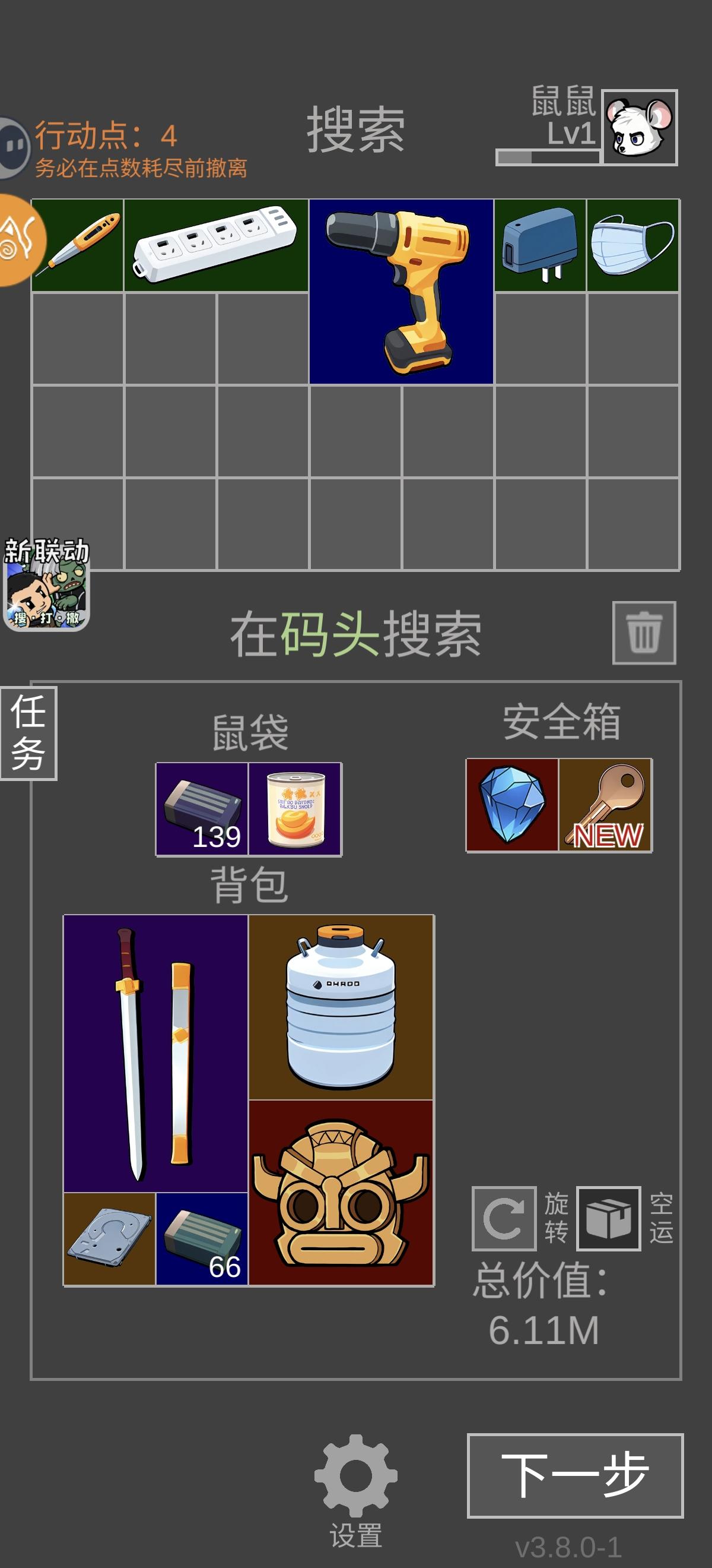刚进游戏去不了常规局,先在萌新局猥琐发育,武器用后坐力小的,后坐力数值越低,后坐力越小,带上你最好的装备,还有手雷,和药,队友选突击鼠,让他前排承担伤害,去郊区发育,找紫色点搜,注意行动力,郊区是三个地图力行动力最少的一个,行动力没了要看广告才能恢复些行动力,分配好你的行动力。开局碰到匪鼠能绕就绕,因为匪鼠的装备都比较垃圾,刚开局匪鼠背包也没有好东西,如果碰到半装鼠或者护航鼠,这些装备比较好的,