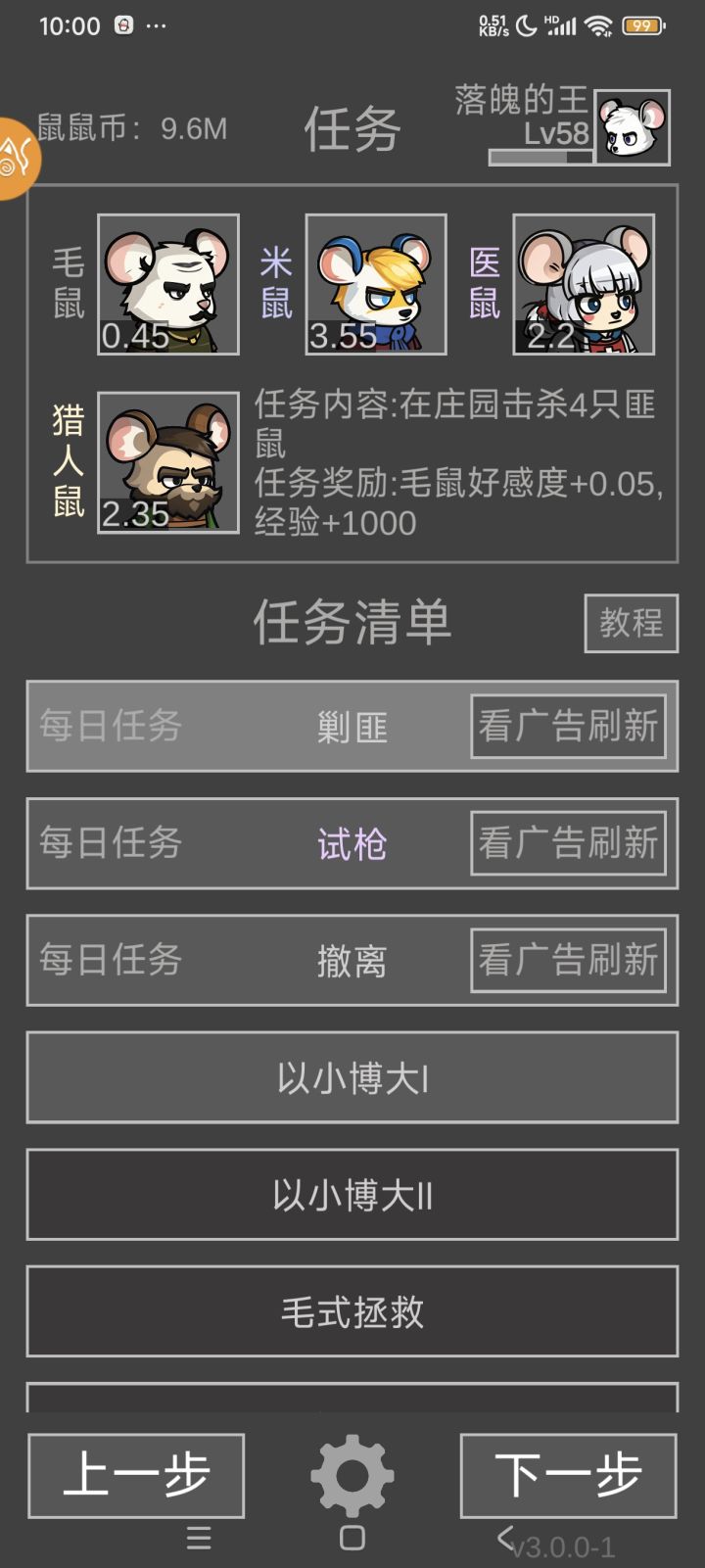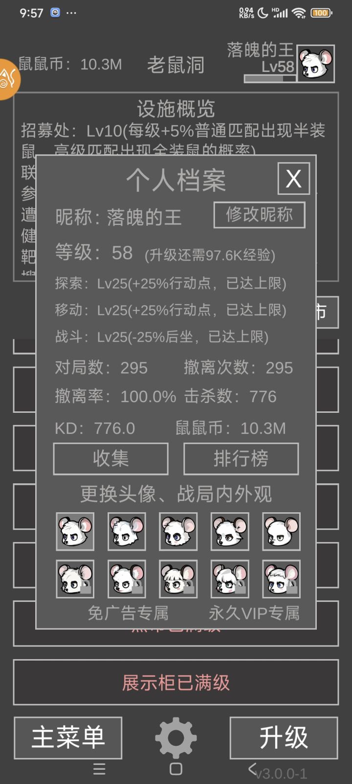 刚进游戏去不了常规局,先在萌新局猥琐发育,武器用后坐力小的,后坐力数值越低,后坐力越小,带上你最好的装备,还有手雷,和药,队友选突击鼠,让他前排承担伤害,去郊区发育,找紫色点搜,注意行动力,郊区是三个地图力行动力最少的一个,行动力没了要看广告才能恢复些行动力,分配好你的行动力。开局碰到匪鼠能绕就绕,因为匪鼠的装备都比较垃圾,刚开局匪鼠背包也没有好东西,如果碰到半装鼠或者护航鼠,这些装备比较好的,