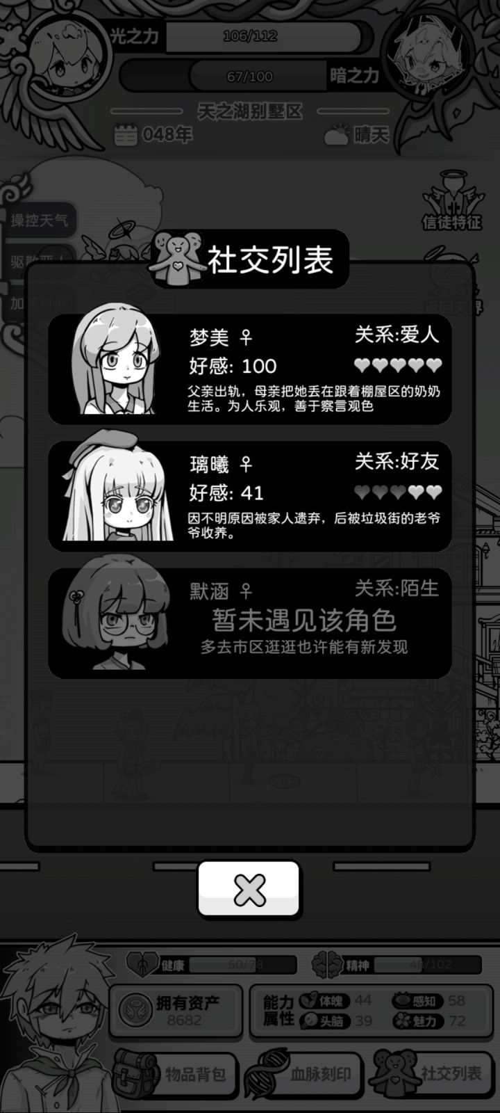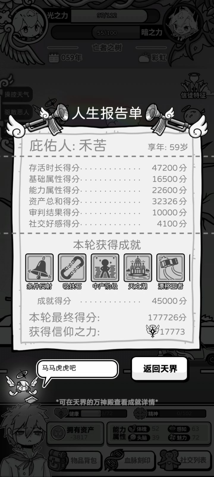 根据记忆写的,如果有变动以实际情况为准。神选人生需积分达到7,不然会落选,也无法开启神选人生线。干预或抽牌通常需要消耗10光之力幼年随机事件:最初的机遇:选项获得对应血脉,体魄/头脑/感知+10,前两个选项消耗10光之力抽牌,第三个不用次元隔膜:光之力+20美味的汤:健康+10,体魄+8小人物大智慧:暗之力+8,头脑+8,精神-10第一个玩具:精神+10,魅力+8贫困资助:大成功
