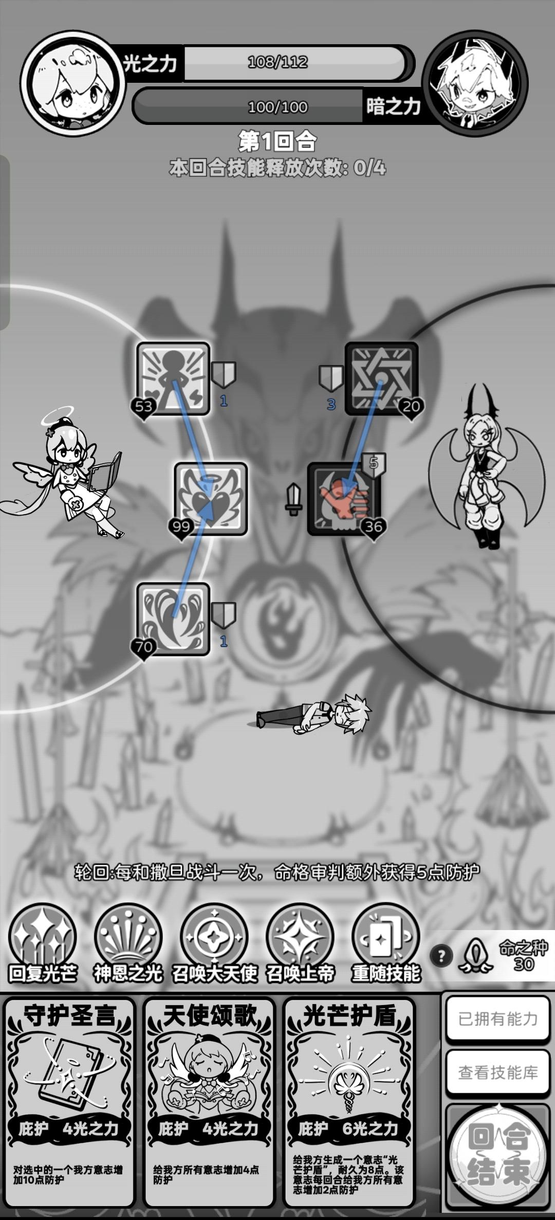 在基因缺陷、永久熵增、撒旦加强、天使宅削弱的情况下,历经千辛万苦,打出了如今的战绩。我有几点想说,首先是熵增,在基因缺陷加回去的情况下还是永久的有点过分了。其次是撒旦,撒旦三回合一击的话那我第二回合用的牌咋办?不论是攻击还是防御都不好叠。最后是审判,审判能力十八种,一轮只能用六种,重随也就三次算了,还能重新选到原来的!建议重新随机能力变成指定能力,花了钱的东西!