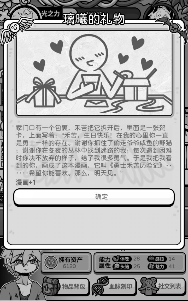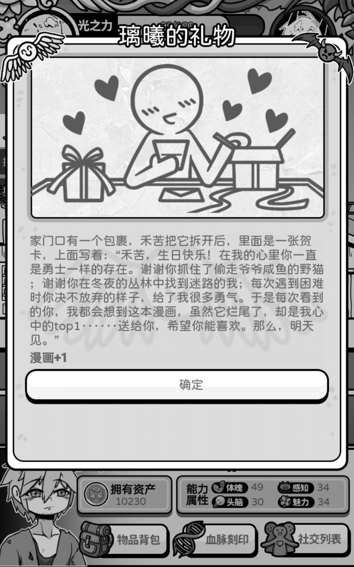 曾经天真的我一直以为只要我一直打,总会打完的直到我都123岁了还在打……我就知道小东西彻底完了撒旦姐我们一定要至死方休吗(-̩̩̩-̩̩̩-̩̩̩-̩̩̩-̩̩̩___-̩̩̩-̩̩̩-̩̩̩-̩̩̩-̩̩̩)谁懂我才3级府邸,技能点也没点满,有好感度的只有上帝和大天使(也没点满)这把玩的游戏公司——天选之人的路线其实主要也看婴儿期的运气,这把婴儿期完了基本状态是满的,20出头和默涵结婚