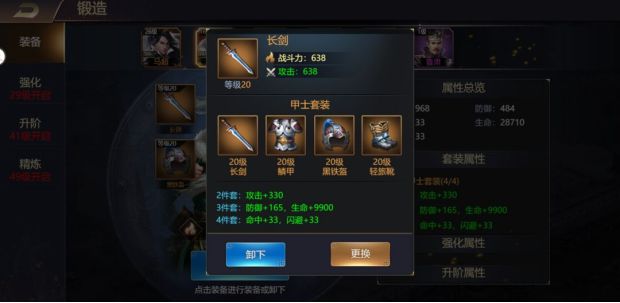 今天给主公讲讲装备这个模块,装备可以通过三方面来提升,强化、升阶、精炼。今天先讲准备,后续再详细讲后面提升的主要途径。装备在君主18级的时候开启,武将通过穿戴装备,能大大提升其战力值,装备按品质分为五种,即绿蓝紫橙红。其中红色装备提升战力最大,装备也分等级,分别从10级到190级,级别越高战力值越大,装备种类有多达几十种,不同装备的攻击、防御、生命等等其作用大小也不等。每个武将可穿戴装备一套