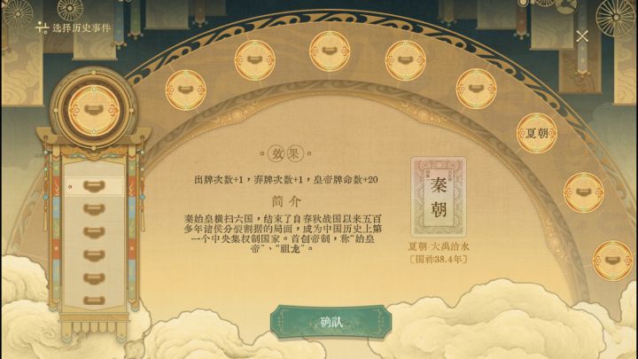 《对弈五千年》是一款以中华各个朝代历史事件为关卡,用五行的各个职业人物当卡牌,辅以天干地支、星宿、六十四卦象、北斗七星等为功能牌,每局选出五张卡牌打出特定的牌型获得分数,在有限的次数内超过目标分数就算成功进入下一回合,共计24回合。玩法类似小丑牌,不过牌型更贴近国内玩家的常识,玩过斗地主的基本上记牌型没什么难度,增加命数和倍率的道具也很丰富有趣,但是感觉关卡设计的太繁琐了,每个朝代分为若干个事件,虽然每个事件都有独特的机制,比如(出牌次数+1,星宿费用减半),但因为数量太多,削弱了这种差异感,基本玩法也不会随着事件变化有太多的变化,导致后期的惊喜感不足!