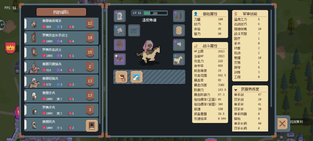 #游戏攻略 游戏基本已经被我吃透了,至少目前 1.感觉行进速度太慢怎么办:很简单,去买几匹马,就放在背包里面 2.拿了很多东西跑不动怎么办:也是很简单,去买马车,也是放在背包里面 3.前期怎么发育:去下面的两座城,就追下面的两座主城,先到左下的主城去广场招募人,全招了,然后买风干牛肉,去右下的城卖,买点黑面包够吃就行,等后面人全身到暴风骑兵然后再慢慢招人,全升成暴风骑兵,两位英雄不要忘记学管理和掠