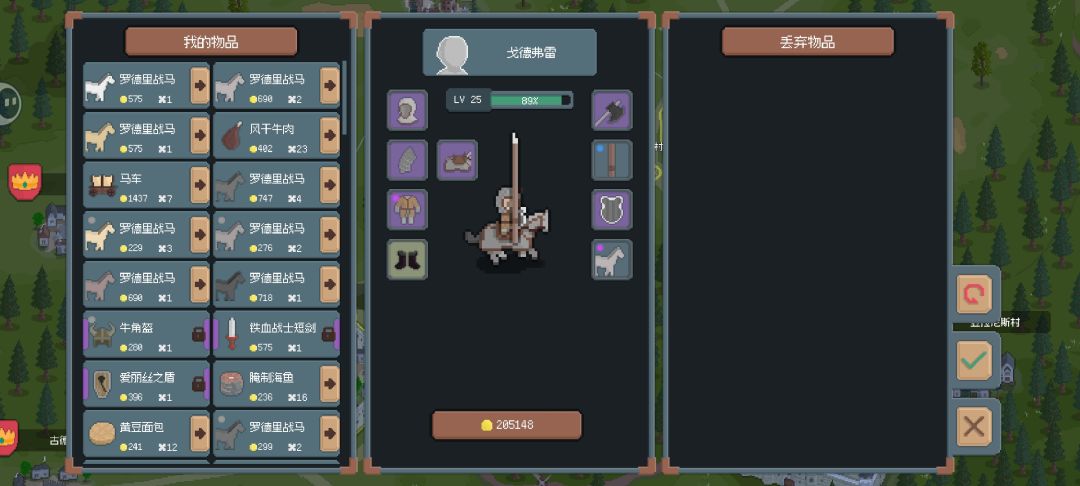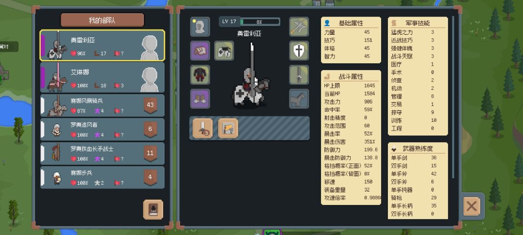 1.退役骑兵喜欢打猎开局3000块直接跑下去 看到城的王国图标变了全招赛娜民兵 后续升级:步兵-轻骑兵-风暴骑(步兵兵多追不上小怪) 2.凑够15-20兵,在城里买食物休息,等刷海寇 (前期只买保质期20天以上的主食,吃完了有提示) 怪刷了15兵以下就打,量级接近我们移速快 3.保险的可以打10兵怪,边打边在附近招 (食物别断,快吃完就去买,没士气打不过) 4.±30兵暂时够用,没用的装备找紫色城