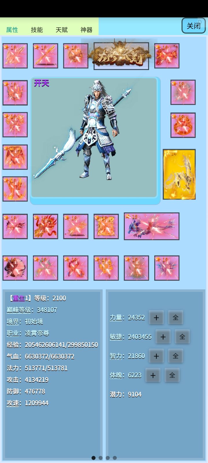 简单的攻略进游戏后,看双倍经验和金币广告,清空产业。挂新手村地图升级。力量点到10点可以秒新手村地图就挂着等出技能秘境。穿上精炼12的10级套装备再去打技能秘境(10个同等级精炼一次)这是前期属性来最快的方式出个全体技能就好挂机新手村了。没天赋前,最好技能是五行爆(四维*2的伤害)打败50级首领获得转职物品,哪个职业都差不多(升级额外加一点属性的区别),还有2转和3转职业等待你。每10