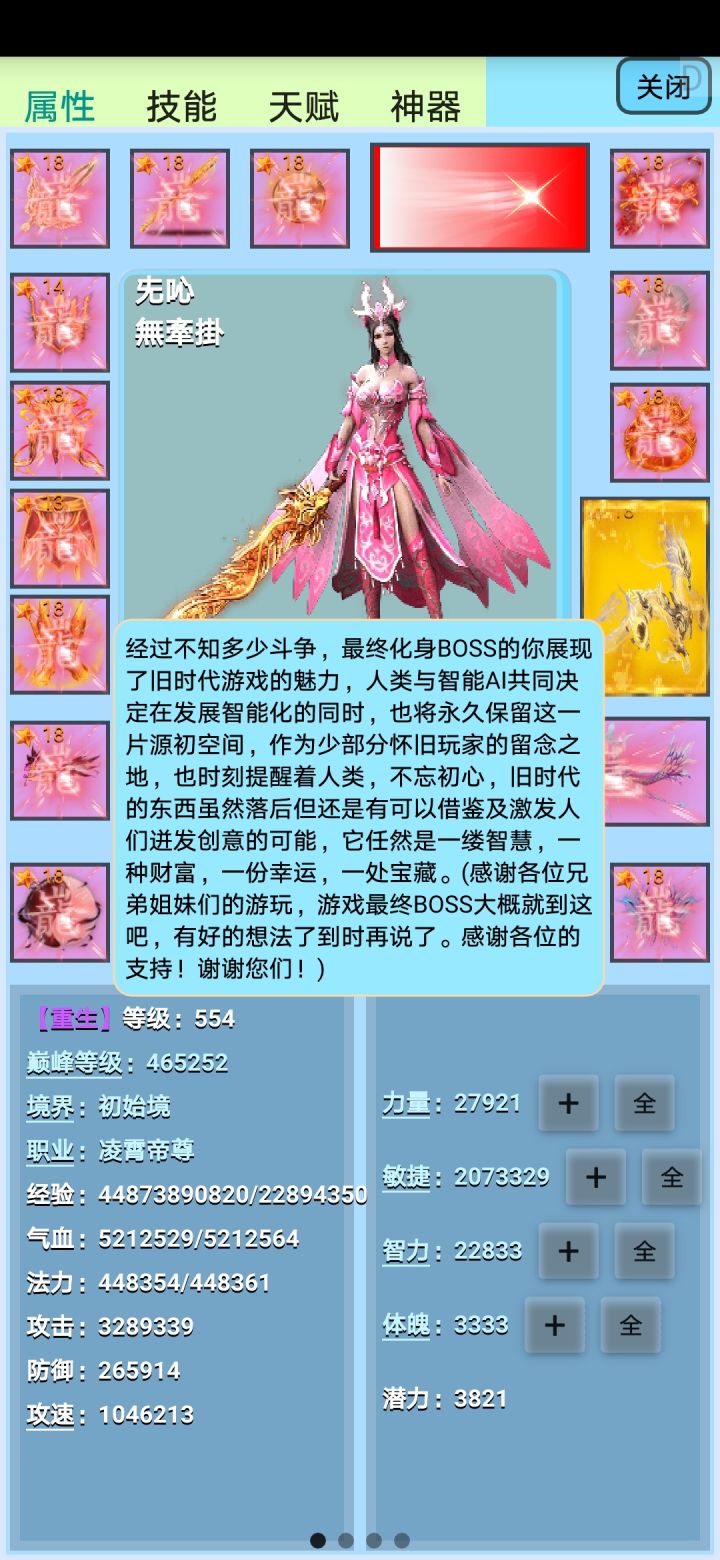 25000.10000.9000...新境界就这些潜力点,作用不大。新职业被动附加攻速×2的真伤,还可以。新技能灵蛇刀提升很大,附加敏捷×5的毒伤,还能连击叠加,就算不叠加都是其他伤害总和的倍数了。有这个技能BOSS终也轻松过。就这样轻松通关了吗???说好的凶猛BOSS嘞!…!