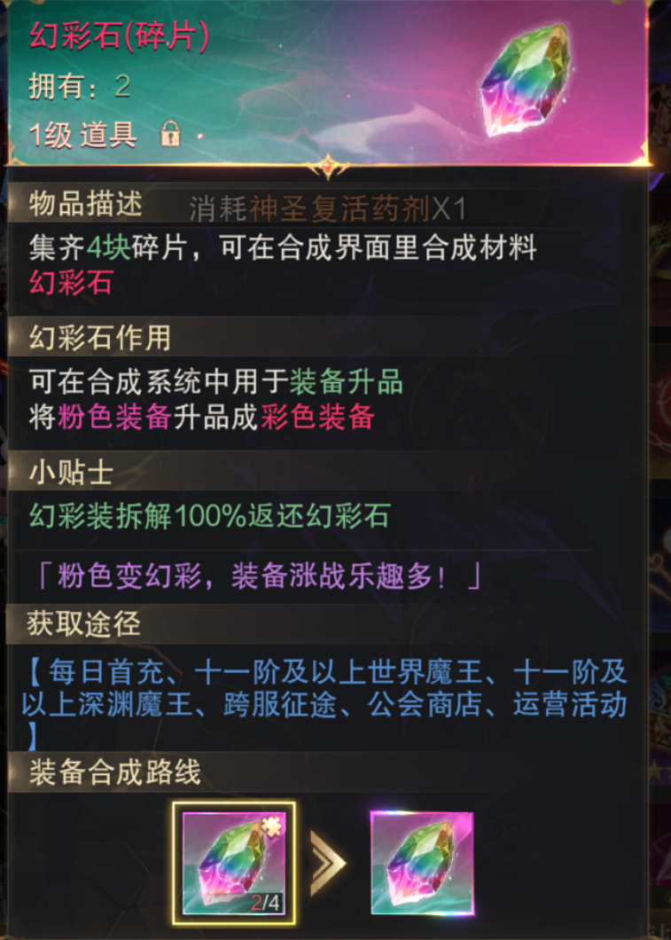 装备觉醒,可提高装备的基础属性 不同阶段不同宝石点亮需要消耗不同数量的觉醒石 当宝石进度达到100%时,宝石点亮,同时装备觉醒等级提升1级。当前阶段装备所有宝石都点亮时,需要进行觉醒突破 消耗装备突破石进行觉醒突破 觉醒进化 消耗装备进化石可进觉醒进化 完成觉醒进化后,装备觉醒将会提升一个颜色品级,觉醒石可通过失落神域副本公会战拍卖行获得