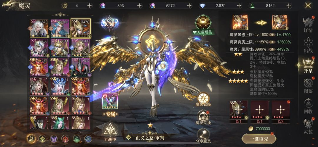 魔灵正义之怒审判是较为强大的存在。其主动技能“圣裁之刻”,能赋予主角灰烬之躯,每0.5秒回复主角1.1%的最大生命值,并且在持续时间内,主角受到致命伤害时,仅承受主角最大生命20%的伤害,还能获得2秒无敌。这一技能在战斗中可极大提高主角的生存能力,使其在关键时刻免疫死亡,继续战斗。 从魔灵搭配来看,正义之怒审判可在后期替换月神等魔灵,尤其适合不缺伤害的阵容。不过也有玩家认为,在后期它不如女娲,因为