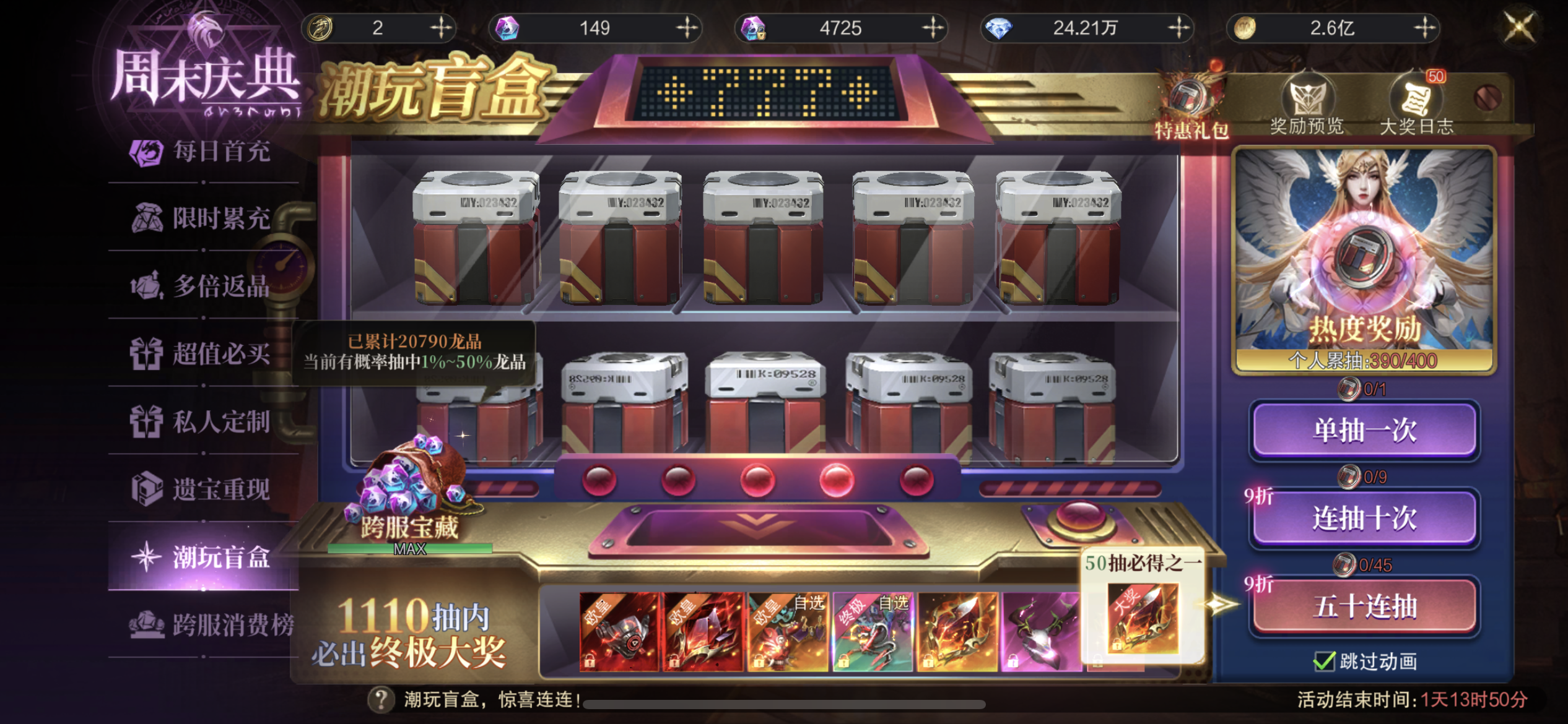 每次抽奖看着这么好的奖励就心动,可是没龙晶咋办,冲,走一波。 #神域纪元