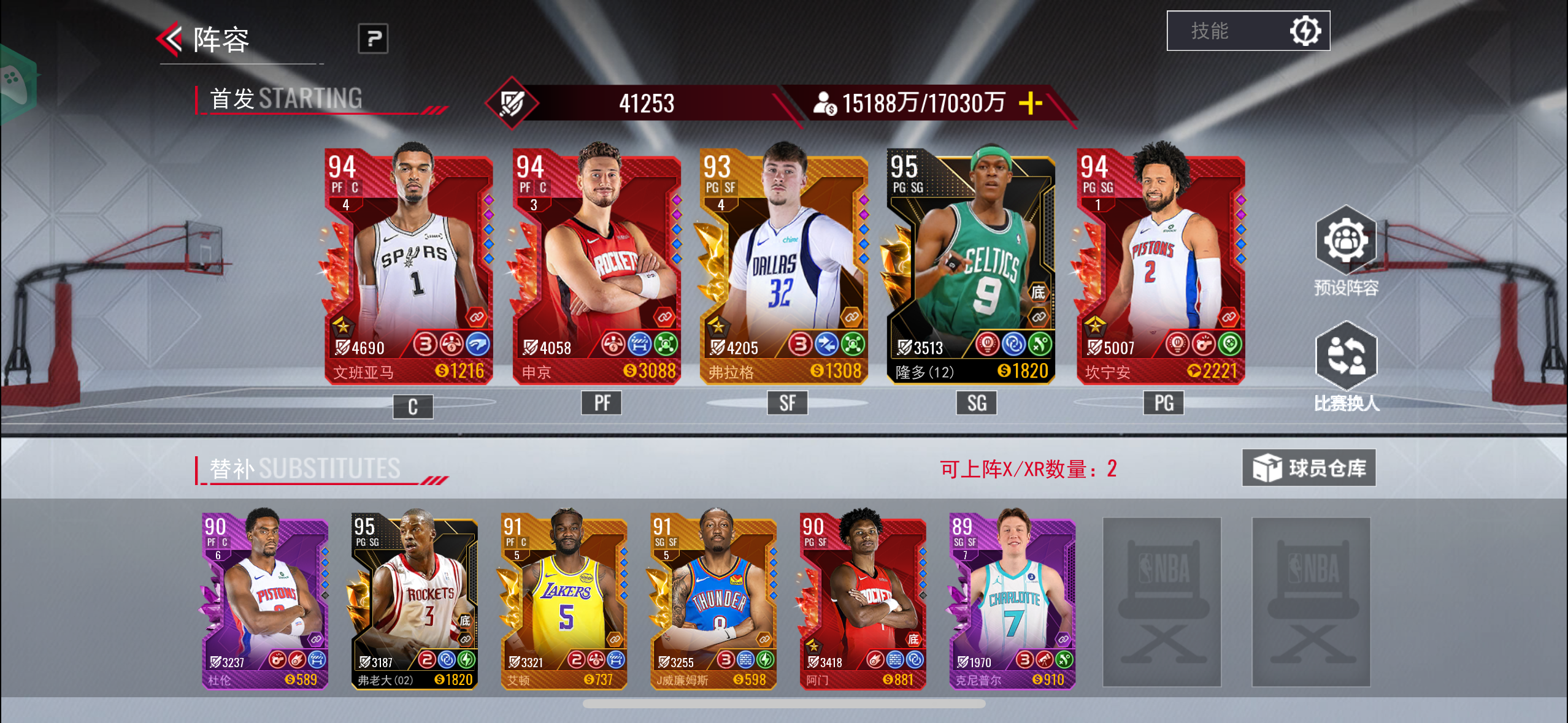 求大佬帮忙看看,我这阵容换哪个X球员好一点