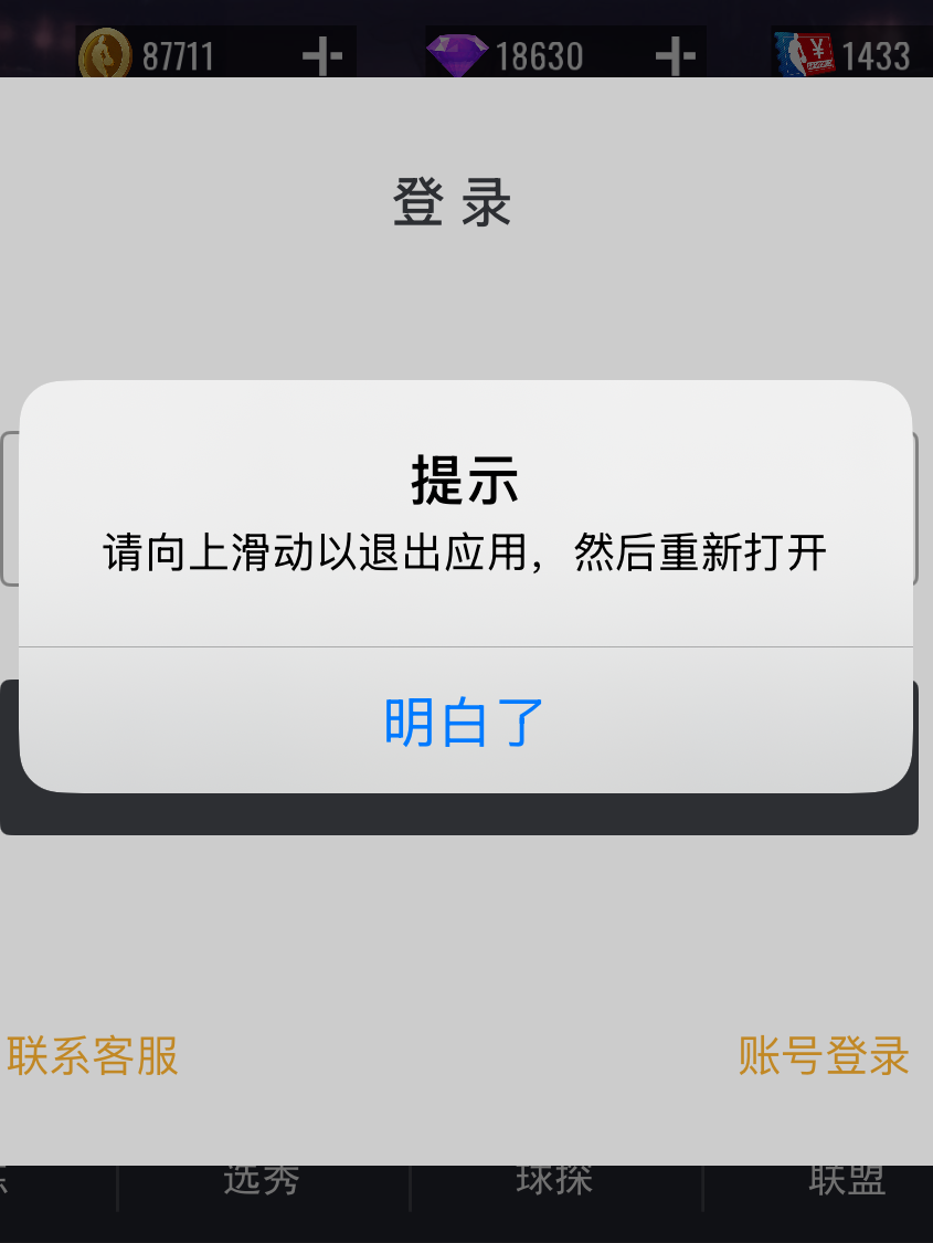iphone手机切换账号的时候显示这个,是必须要重新开游戏吗,有人出现这种情况嘛
