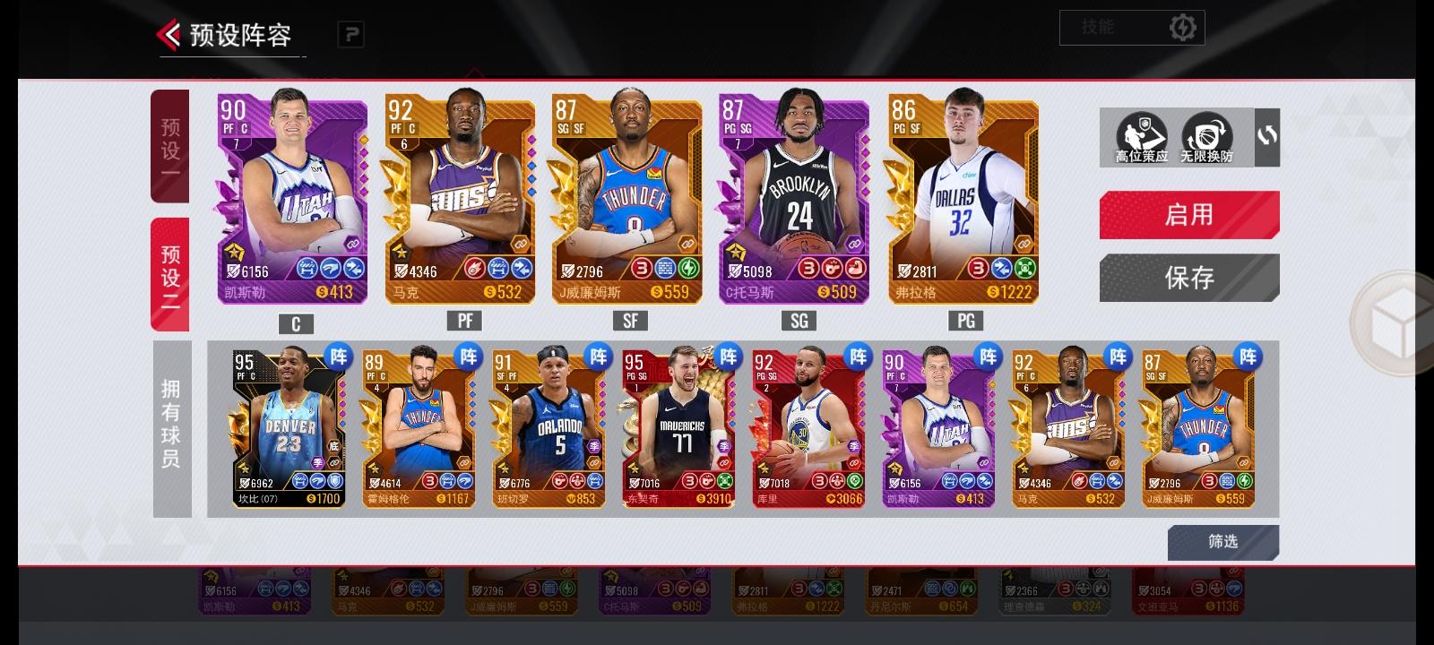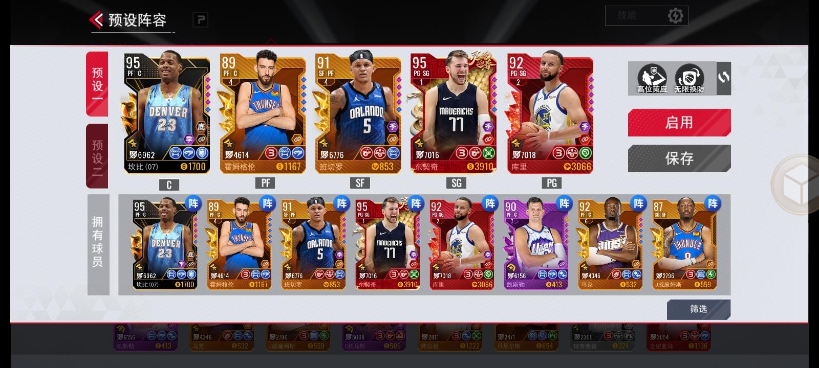 新版阵容推荐在本次技能调整前,许多总裁阵容中上阵了东契奇,主要是看中其全能霸主技能的稀缺性与他本身的出色表现。而技能调整后,拥有全能霸主、防守体系、战术发起者等技能的球员有所增加,同时,乐于分享、无解单打等技能也得到加强。依靠固定阵容一招鲜吃遍天的时代就要过去了,阵容搭配灵活多样,更多总裁可以借此机会培养并上阵自己真正喜爱的球星了!※技能解析:「乐于分享」技能可为助攻队友恢复其体力,技能本身