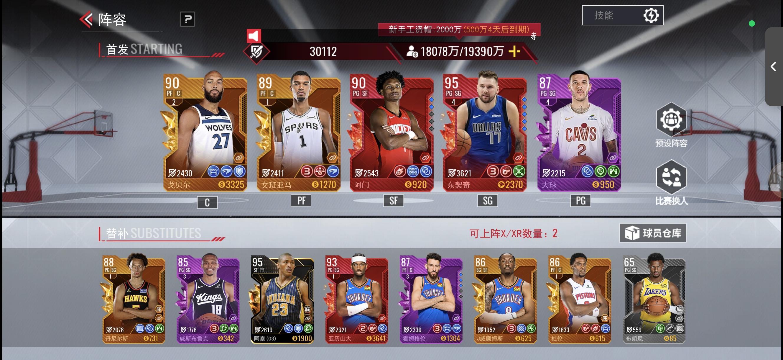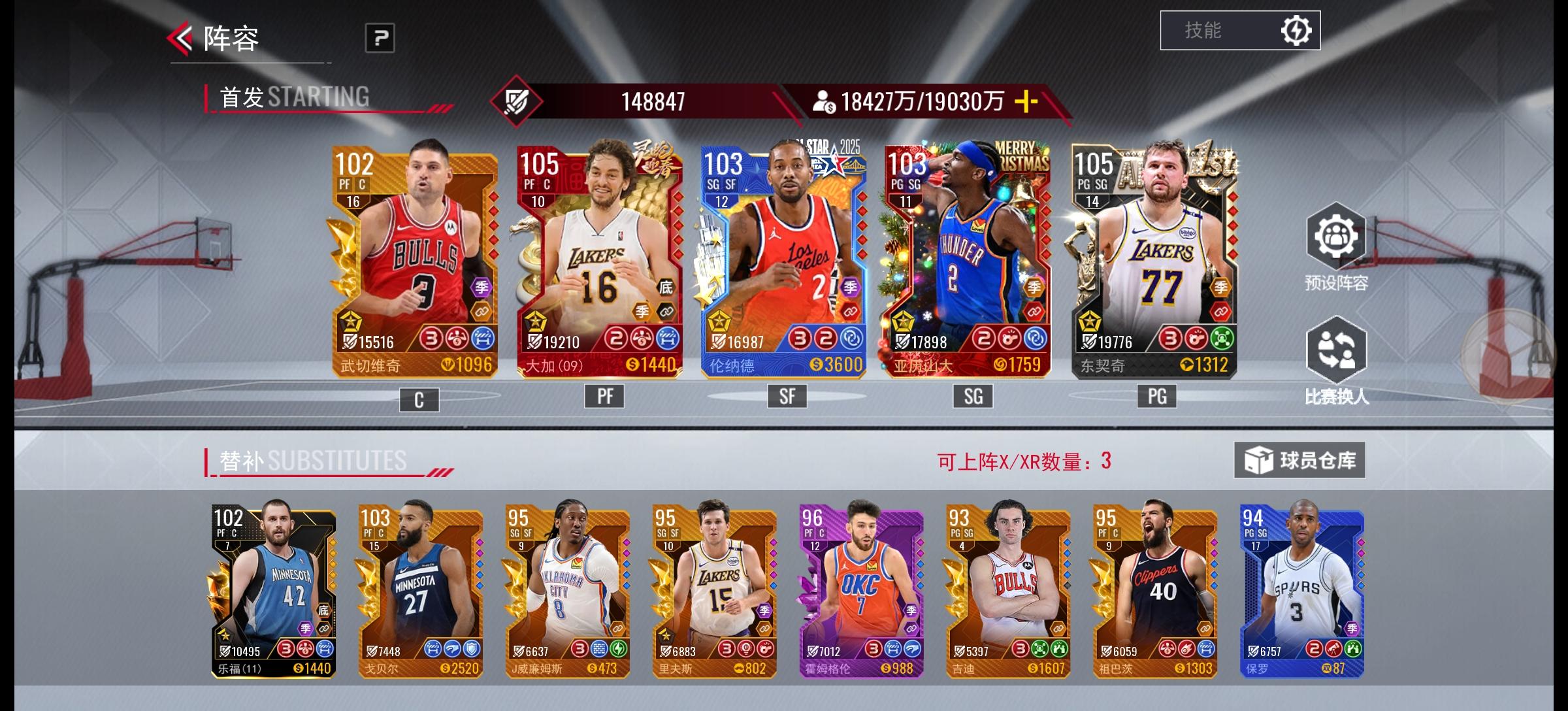 目前首发是临时的,纯粹战力高凑活应付,替补的字母、浓眉战力、特技基本定型,都可以换首发;阿门放替补作为主要战力;哈珀和班切罗都是辅助特技,放替补充当吉祥物,剩下纯粹凑队套,包括仓库的艾顿。本打算字母换弗拉格,但一是弗拉格首发个人战力高接近2k(装备都是SF,专精也都是最适配两人的,可能是独行侠队套和教练招牌组合加成,以及弗拉格多个新秀核心)。二是弗拉格个人得分和效率不错(这套阵容得分王),目前比