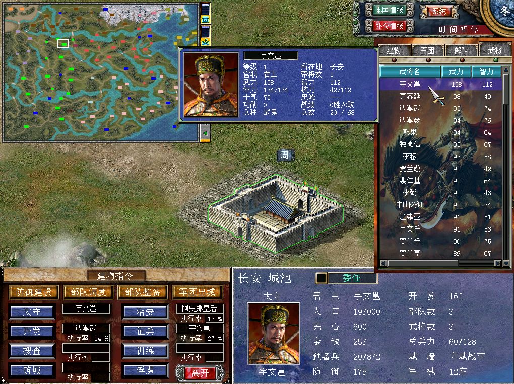 提到“宇文”这个姓氏,我们绝大多数人的第一反应应该是发动兵变并杀死隋炀帝的一代枭雄宇文化及。其实在他之前,宇文邕这位北周的第三位皇帝对于华夏历史的影响更大,正是在他的统治时期,北周灭掉了北齐,从而给之后杨坚创立的隋朝留下了一副坚实的国家根基。《三国群英传7》的隋唐群英版本,自然也给他留下了一席之地。 在我个人看来,开局阶段就掌握关中和益州地区的北周阵营,是隋唐篇里最容易发育起来的。北周之主宇文邕得