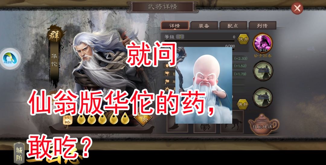 听着TapTap版《城防三国志》华佗的声音,总感觉是无量仙翁,正伸手送来一颗灭魂丹,有没有这感觉[表情_大笑],还是夏侯渊接地气,一听就像豹子精转世。猜猜张辽、吕布、马超是谁的声音?#城防三国志 #slg #发现好游戏 #游戏安利 #游戏推荐 #游戏种草计划 #游戏资讯