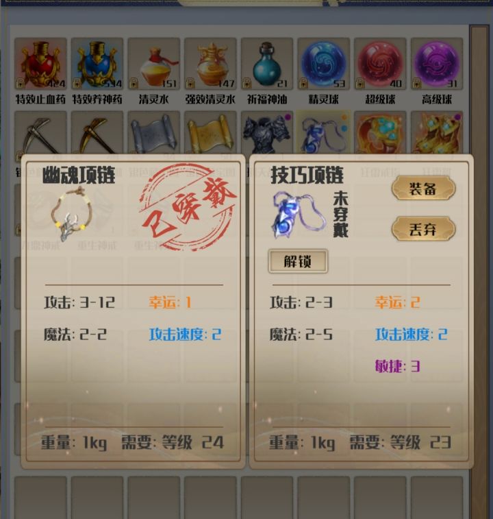 属性如图,有些装备还是穿不上,稀有boss没用元宝试,不知道掉什么!
