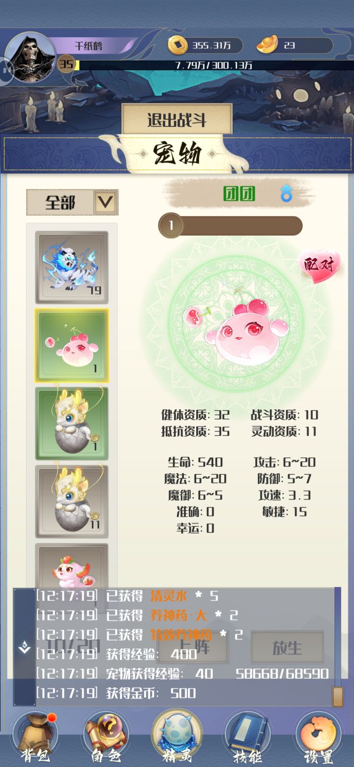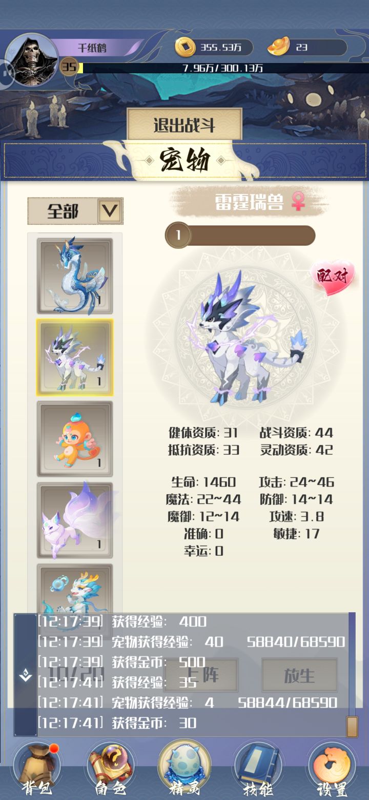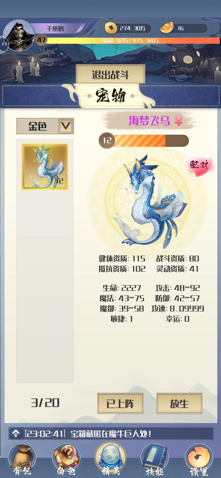 一、宠物1.开局:蓝色精灵球100%抓龙宝宝,平均资质20就行;中期:首选海马,其次龙龟、蓝龙、火凤;后期:鲲鹏、卷尾灵。野外宠物有6个点刷新时间分别为8:00、13:00、16:00、19:00、21:00、23:002.宠物蛋。仙品宠物蛋可以开出2000血级别宠物,神品宠物蛋可以开出3000血级别宠物,建议前期sl开个2000血的宝宝过渡。孵化前添加药草可以直接增加宠物属性,同时宠物等级可