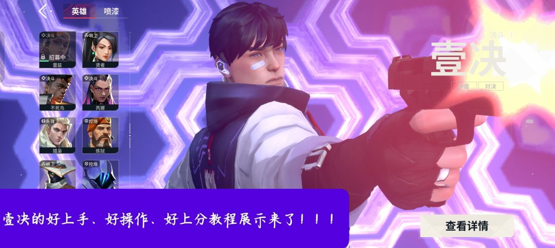 无畏契约这款手游,已经正式上线一段时间了,可英雄等的使用,还有其他枪械的选择,对局的技巧却还不是太过于完善,而今天,就以分享的形式,给玩家们,带来一个最近上线的新英雄-壹决,这个英雄,可以说就是新手玩家,或者操作技巧等方面不太好的玩家的福音,即满足了想玩无畏契约,又难上手的问题,同时还从这个英雄身上,得到了无畏契约的游戏娱乐体验,真的很不错的,详细的话,可以观看视频讲解教程! #新游安利局