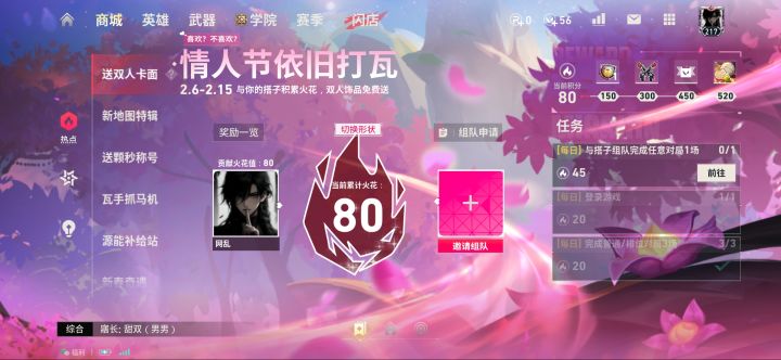 瓦友们,在想情人节的事情吗?情人节将至,有人说,情人节的浪漫是并肩的陪伴;而对于每一位瓦友而言,这份浪漫,或许是开黑时一句默契的报点,是残局里彼此托付的信任,是逆风翻盘后共同的欢呼——这个情人节,不必羡慕旁人,在无畏契约:源能行动,我们陪你温暖过节,绝不孤单! 为赴浪漫之约,我们准备了专属互动活动,无需复杂流程,在本帖评论区参与,即可解锁抽奖资格,超多好礼等你来拿! 参与方式二选一,评论区回复
