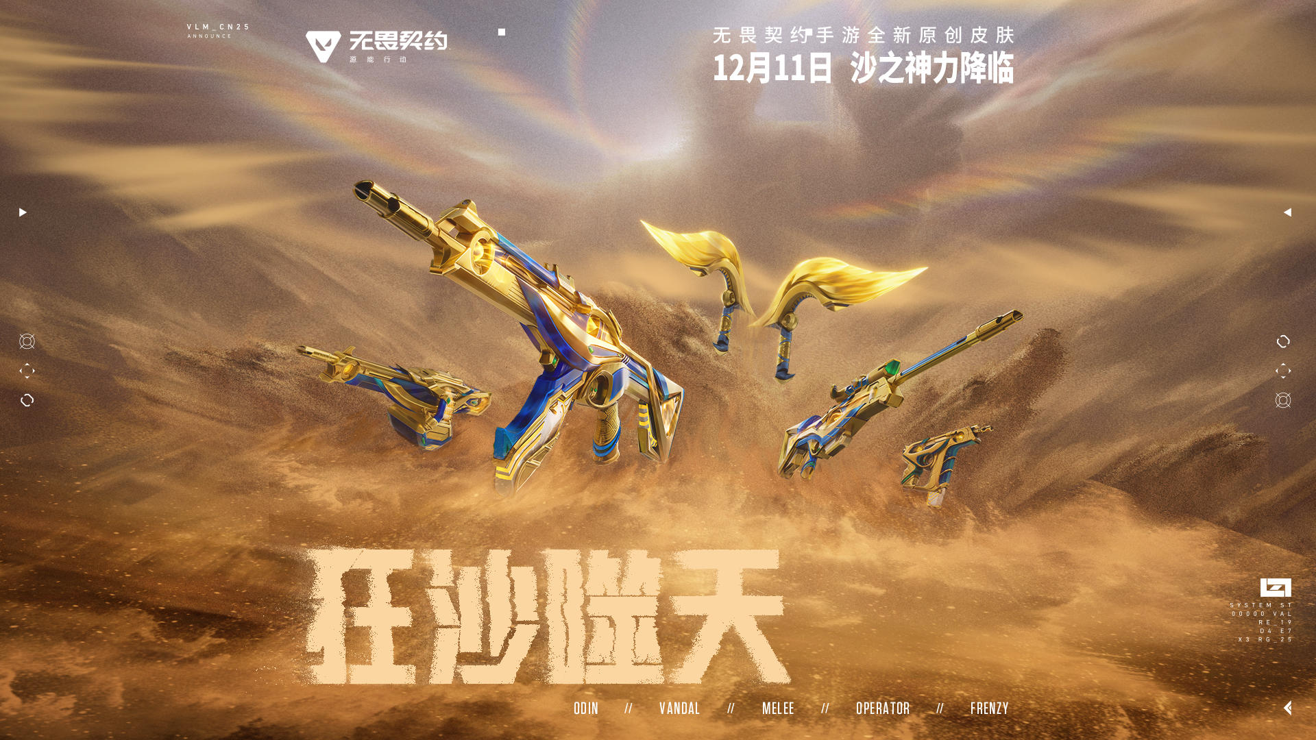 黄沙如硝烟般弥漫,古老的文明逐渐揭开神秘的面纱——瓦手原创系列皮肤【狂沙噬天】12月11日席卷大地!#无畏契约手游 #无畏未知界域 #瓦手狂沙噬天