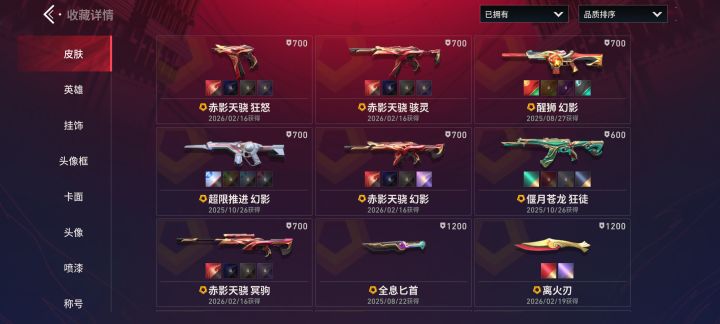 781骇灵,波谱獠犬,威龙鬼魅,奇点正义,离子大狙,跑车蜂刺,这些算是小毕业了不用买枪皮了,幻影跟狂徒等补一个紫金跟侦查,狂怒补一个波谱,喷子不咋想买皮肤