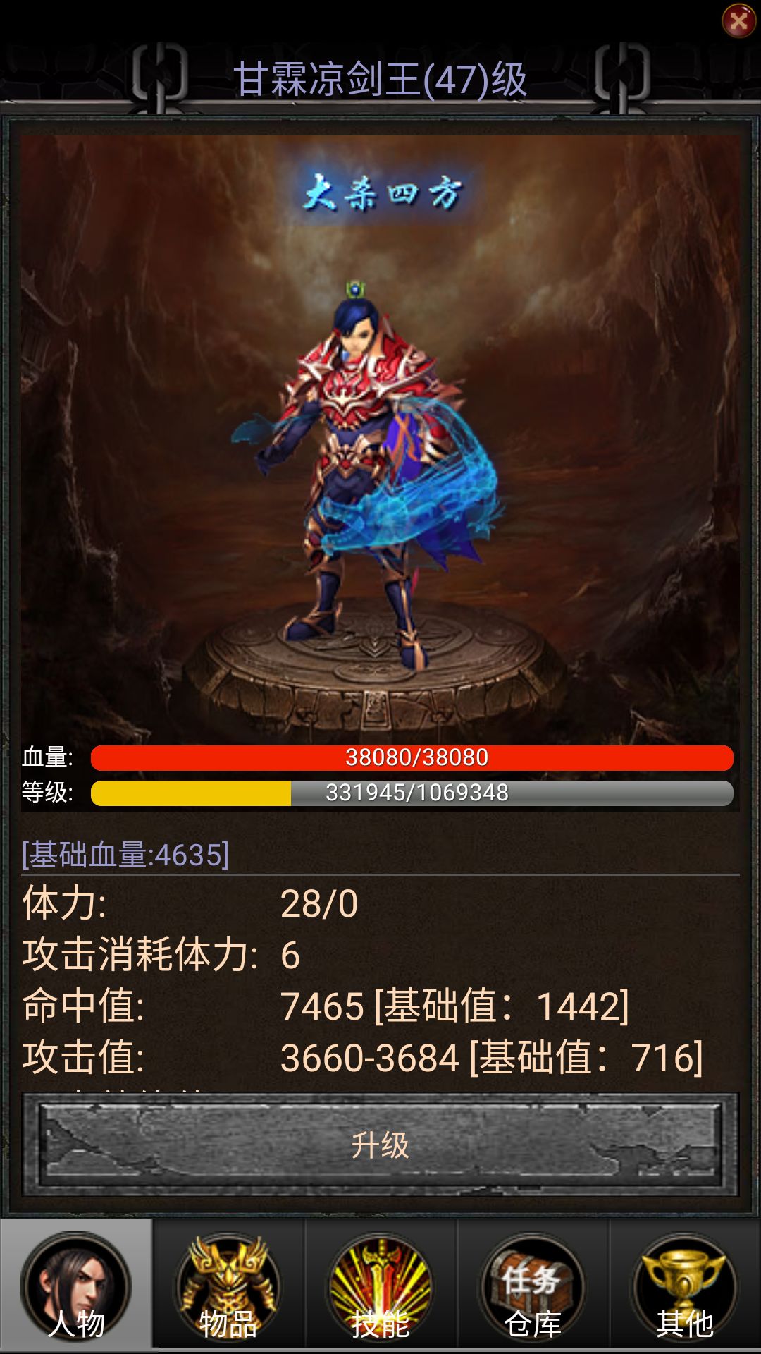 开局先吃一下背包里的经验丹,然后刷蜘蛛升级,前二十级可以全加攻击,二十级到五十级看是缺命中还是攻击,可以随意偏斜,也可以全加攻击。之后升级就可以全加命中了。 钱不缺了以后,两种经验丹就不能断,因为70级前基本上都不会在到达等级限制前卡关,因此升级的越快,过图就越快。 每日上午十一点半到十二点半,下午八点到十点都会刷新宝藏,宝藏会掉落比当前所处区域高一阶的武器,是用来获取下一阶的武器或强化石的首选之