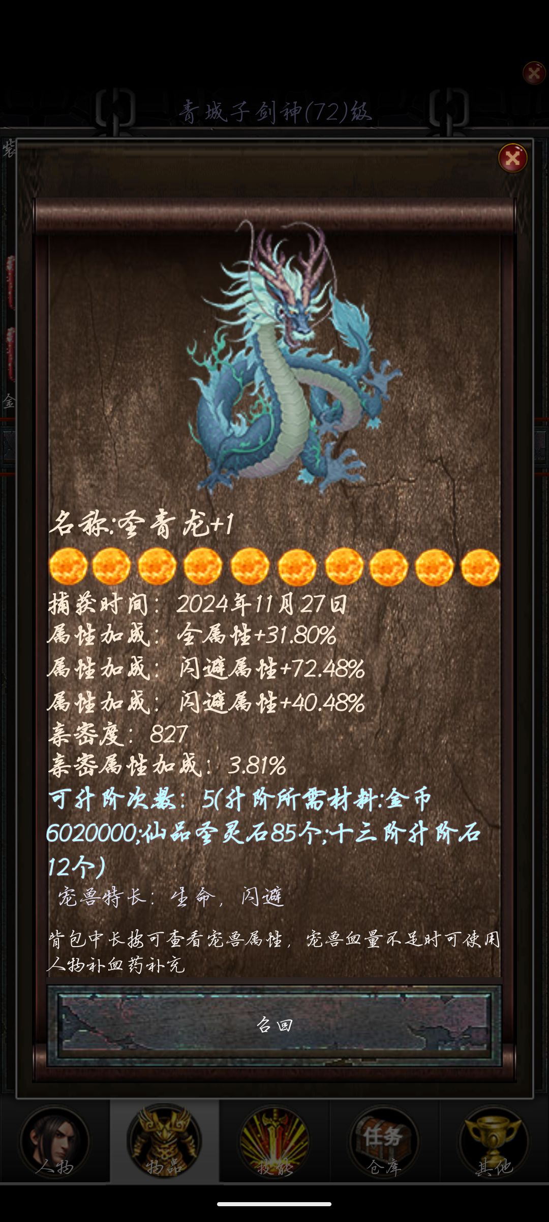 游戏是单机弱联网,打宝藏怪需要网络,氪金的话天运令最有用最高10个,加爆率和背包。 左下角打怪时点开会有图鉴,可以看到会掉什么装备材料,实际命中闪避概率,宠物背包里长按也能看属性。 血药有持续回血和瞬回两种,持续回血战斗前就吃,瞬间回血战斗中不能用 右下角可以设置低血自动吃顺回。 背包里可以快捷回城,复活点可以在有商店的图,有地上光圈手动设置,快速回图很方便。 开局打开背包,装备好武器,经验药吃上
