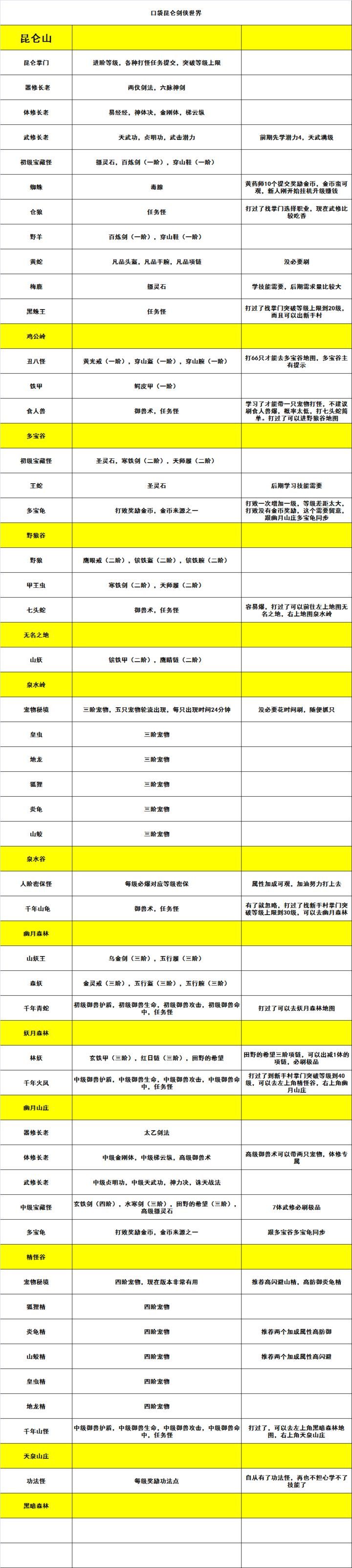 《口袋昆仑剑侠》地图