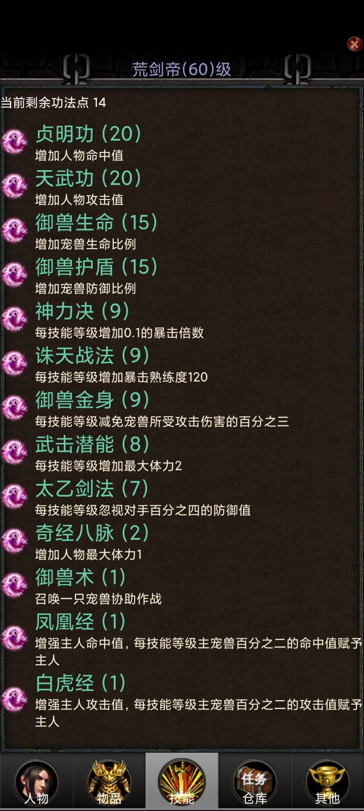 此贴也算是个人的见解(哪里不对大佬勿喷)我玩的是武修,前期也走了不少弯路,也算是肝到了60级武修第一个就是关于升级加点,主修主要加点命中跟攻击,我加的是全攻击,也可以半命中半攻击的加。第二个就是关于功法,我学的技能图片上都有,算是武修比较主流的技能,后续还有一个共享生命,(我还没打到),至于怎么加点各人有各人的理解。像是北冥神功跟追魂灭魄目前版本不太建议学,比较鸡肋。第三个,就是装备,武修的