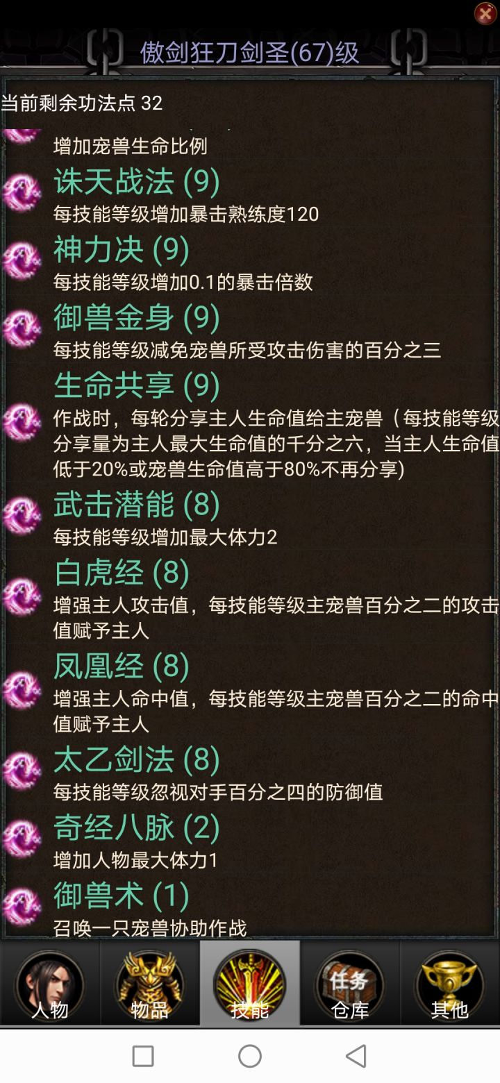 我玩的是武修前期也走了不少弯路也算是肝到了60级 武修第一个就是关于升级加点主修主要加点命中跟攻击,我加的是全攻击也可以半命中半攻击的加,有条件的可以把天运买满,就比较舒服了。第二个就是关于功法,我学的技能图片上都有,算是武修比较主流的技能,后续还有一个共享生命,(我还没打到),至于怎么加点各人有各人的理解。像是北冥神功跟追魂灭魄目前版本不太建议学,比较鸡肋。 第三个,就是装备,武修的装备主
