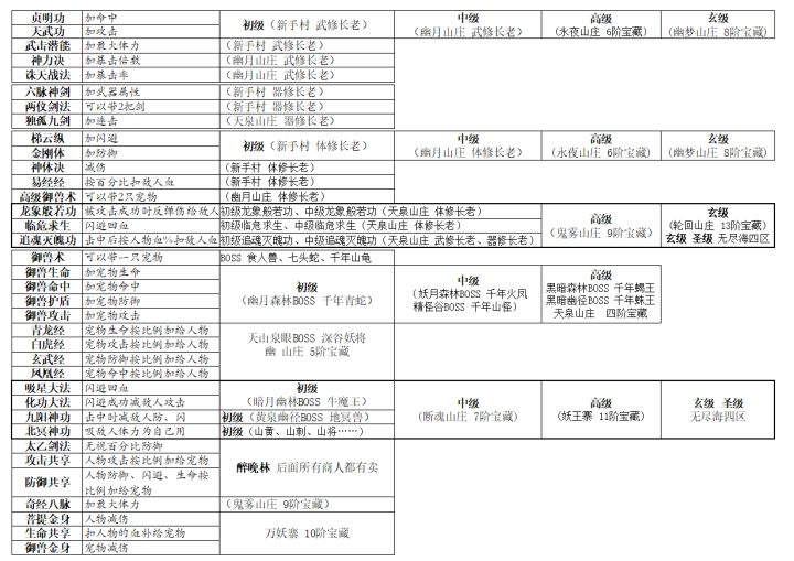 所有技能书以及它的出处。