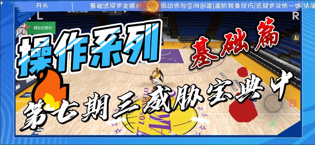 基础篇:9大起手式拆解,化身进攻万花筒 ——你的每个试探步,都是对手的噩梦开端! 一、三威胁核心逻辑 什么是三威胁? 持球后不运球状态下,通过脚步与假动作同时威胁投篮、突破、传球三种选择,让防守者陷入“猜拳困境”。 操作精髓: 1. 确立轴心脚:推【虚拟右摇杆】杆前需原地静止,系统自动固定轴心脚 2. 轻推摇杆:快速松开摇杆触发动作,长推易被判投篮动作。 二、基础试探步全解析 侧向试探步: 向